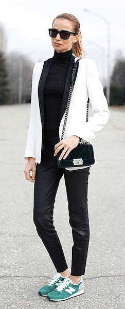 Leggings o jeans, trabajar fuera de engranajes, las camisetas y las camisetas están comúnmente emparejado con zapatillas porque este tipo de equipos son lo que la gente usa cuando están en movimiento. Pero hacer recados y haciendo ejercicio ya no son las únicas ocasiones en las zapatillas son apropiadas. En las ciudades donde caminar es una fuente principal de transporte, zapatillas, especialmente nuevos equilibrios, están encontrando su camino a los pies de los más elegantes de la gente. Famosas como Rihanna y Alexa Chung incluso han usado zapatillas incluso en desfiles de moda se combina con trajes de pantalón y eventos deportivos con faldas metálicos!