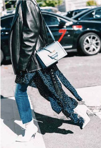 Nada mejor para bajarle un poco el tono princesa a un vestido que enfundarte en una chaqueta rockera: se convierte automáticamente en una buena opción para una salida de día.