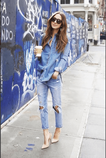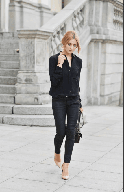 Los zapatos color nude se han convertido en un aliado, los utilizo para que mis piernas luzcan más largas, y con pantalones para evitar agregar un color adicional a un atuendo. La clave para elegir los zapatos nude es que sean lo más parecido a tu tono de piel, para que realmente se logre el efecto “desnudo”, de lo contrario serás una mujer muy blanca con zapatos color camel o una morena con zapatos color beige.