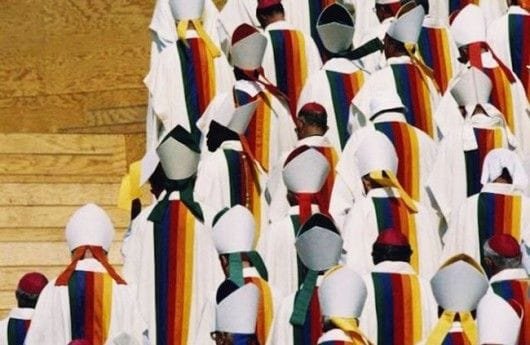 es un hito que tomó lugar el año 1997 en el día mundial de la juventud: para la ocasión, Castelbajac convenció no solo a 5.000 sacerdotes de llevar sus diseños, sino también al propio Papa Juan Pablo II, quienes se enfundaron en sotanas que llevaron el arcoiris a la usanza de la bandera gay en sus espaldas.